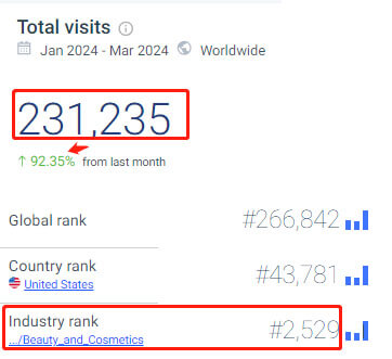 ManiMe, founded in 2017, is best known for its nail stickers, which can sell for $15 each. To ensure that products are visually appealing, ManiMe collaborates with designers to create stylish nail sticker designs. SimilarWeb shows that the website had 230k visits from January to March 2024. In the Beauty and Cosmetics industry, ManiMe has gained some recognition, ranking around #2500.