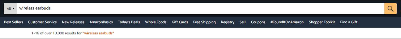 As shown in the following pictures, if you type in “wireless earbuds” only in the search buds, you’ll get more than 10,000 results in total.